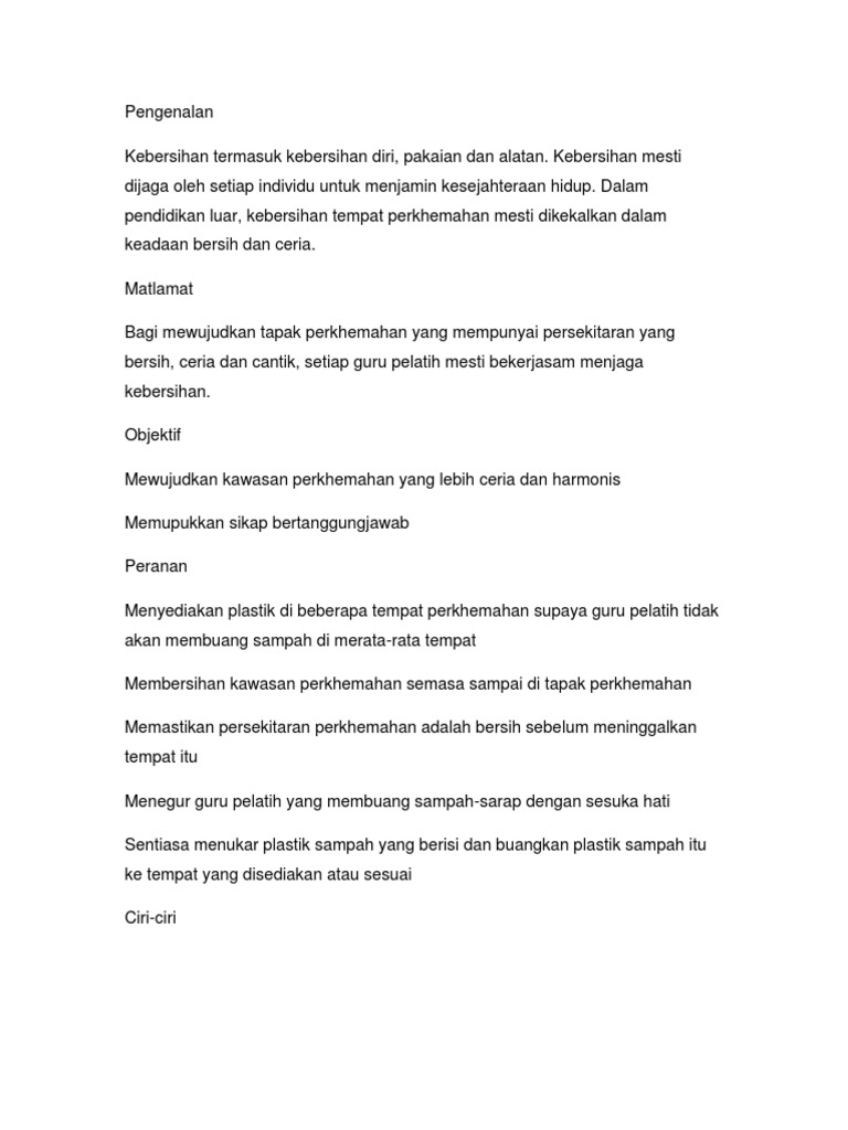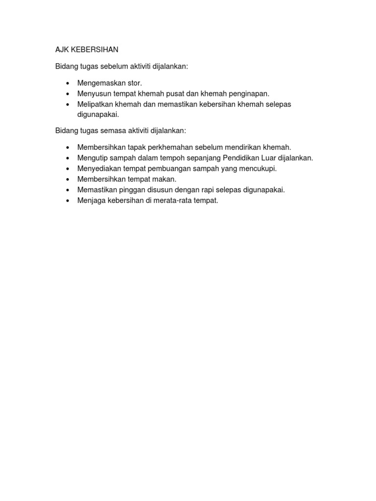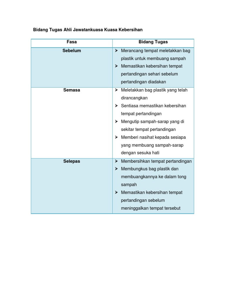 Bidang Tugas Ahli Jawatankuasa Kuasa Kebersihan Pdf