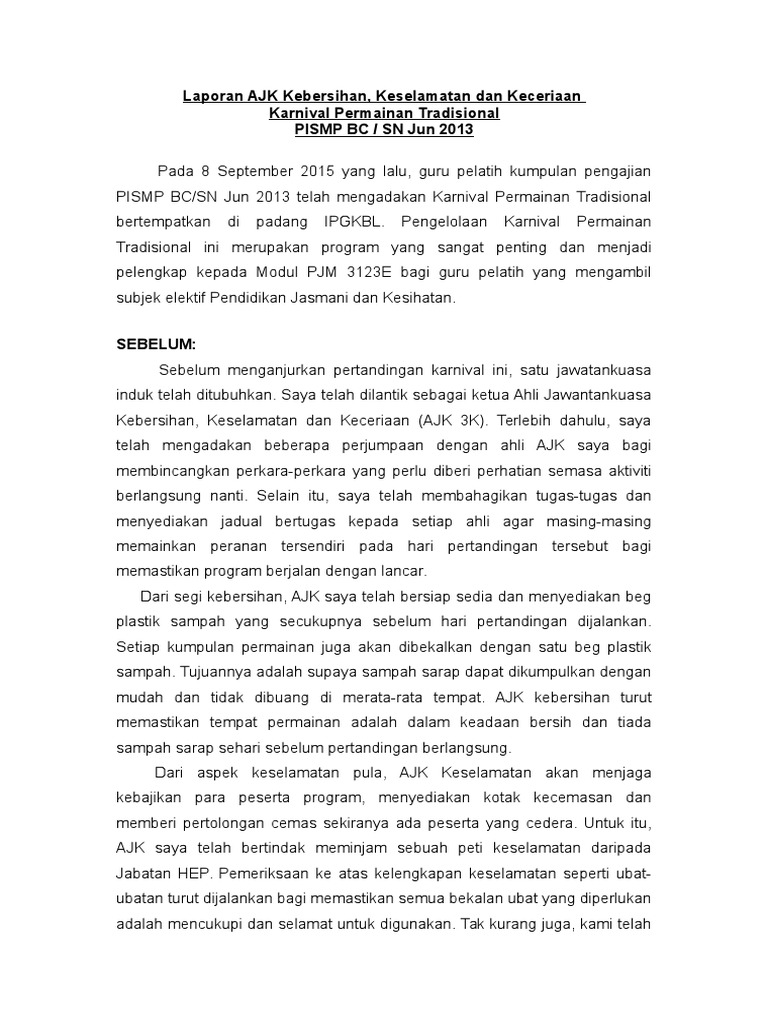 7 2 5 Laporan Ajk Kebersihan Keselamatan Dan Keceriaan Pdf